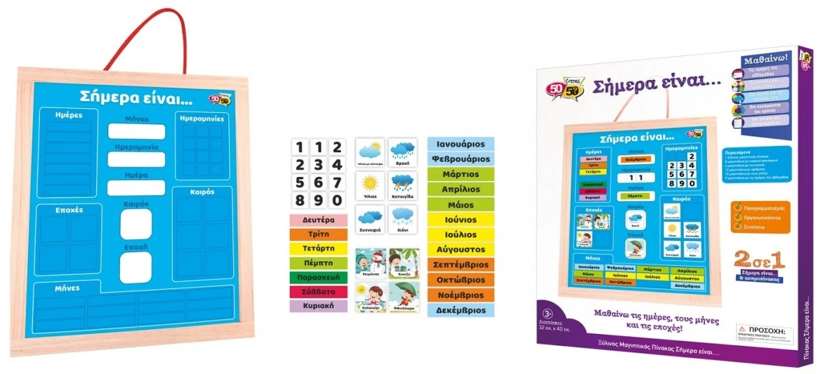 Ένα ειδικά σχεδιασμένο εκπαιδευτικό μέσο που δίνει τη δυνατότητα στα παιδιά να κατανοήσουν την έννοια του προγράμματος και του χρονικού διαστήματος στην καθημερινή ζωή. Να συνειδητοποιήσουν την ημερολογιακή σχέση των εποχών και των μηνών και να αναγνωρίσουν τις εποχικές μεταβολές του καιρού που συμβαίνουν κατά τη διάρκεια του έτους, καθώς επίσης και τα ιδιαίτερα χαρακτηριστικά κάθε εποχής τα οποία σχετίζονται με τη φύση και τις καιρικές συνθήκες. Επιπλέον, να διακρίνουν τη διάρκεια των χρονικών διαστημάτων και να εξοικειωθούν με την έννοια του χρόνου, την κυκλικότητά του και τους τρόπους μέτρησής του.