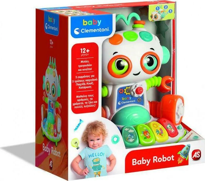 Baby Clementoni Baby Robot Ένα χαριτωμένο ρομποτάκι που μιλάει, παίζει και τρέχει στο διάστημα! Τραβώντας τον μοχλό, το ρομποτάκι αλλάζει 3 διαφορετικές εκφράσεις για 3 λειτουργίες παιχνιδιού (δραστηριότητα, κουίζ και υπνηλία). Τα εκπαιδευτικά κουμπιά μαθαίνουν στο παιδί τα ονόματα των ζώων και τους ήχους τους, τα χρώματα και πολλές νέες…