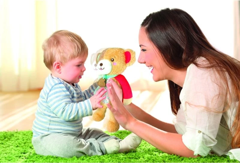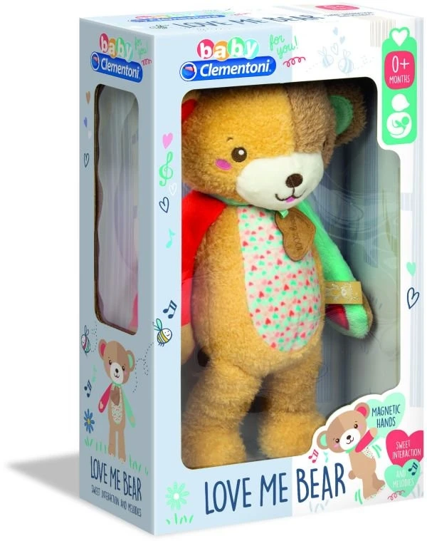 Baby Clementoni Βρεφικό Χνουδωτό Αρκουδάκι Αυτό το χαριτωμένο αρκουδάκι, αλληλεπιδρά με το παιδί χρησιμοποιώντας ηχητικά εφέ σχεδιασμένα να προκαλούν στιγμές τρυφερότητας. Οι μαγνήτες που είναι προσαρτημένοι στα χέρια προσκαλούν το παιδί να το αγκαλιάσει. Κρεμάται στο καροτσάκι ή την κούνια.