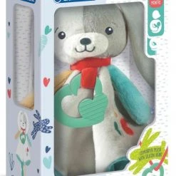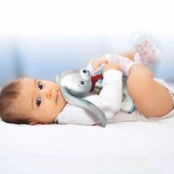 Baby Clementoni βρεφικό μαλακό χνουδωτό λαγουδάκι. Απαλό κουνελάκι-κουβερτούλα που καθησυχάζει το παιδί. Η καρδιά από σιλικόνη είναι μασητικό που μπορεί να την κρατά το παιδί, αλλά και να τη φορά η μαμά ως κρεμαστό κόσμημα. Το ύφασμα είναι υπο-αλλεργικό.