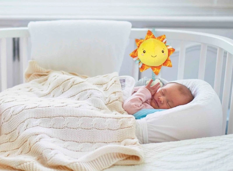 Απαλός μουσικός ήλιος που χαλαρώνει το μωρό κατά τη διάρκεια του ύπνου. Με πλαστικό σύννεφο και κορδέλα για να το κρεμάσετε στην κούνια ή το καροτσάκι. Διαθέτει Μελωδίες του Μπράχαμς.