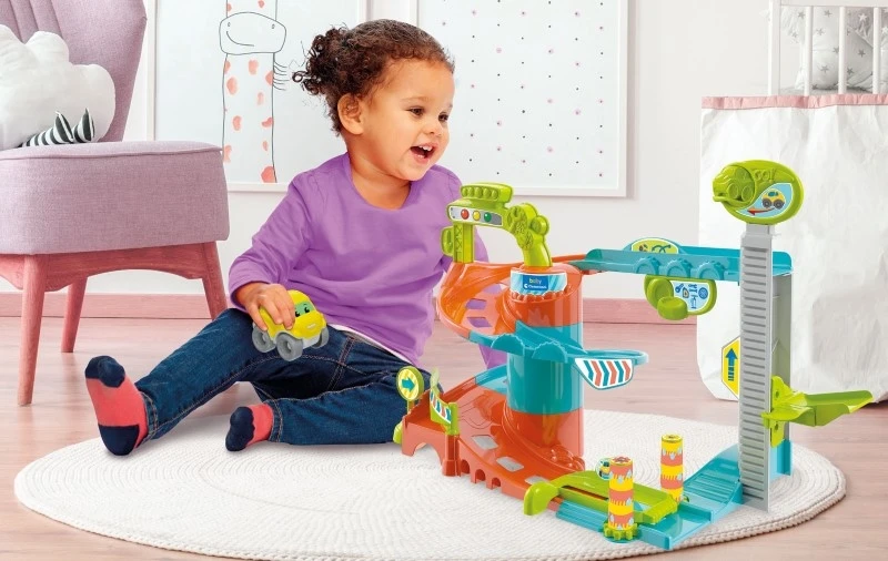 Μια πίστα γκαράζ γεμάτη διασκεδαστικές δραστηριότητες, κατασκευασμένη 100% από ανακυκλωμένο πλαστικό. Το αυτοκίνητο κάνει πραγματικές τούμπες όταν φτάνει στην κορυφή του ανελκυστήρα και στην βάση της ράμπας , ή τερματίζει τον αγώνα στο πλυντήριο αυτοκινήτων ,με βούρτσες πλυσίματος που πραγματικά γυρίζουν!!