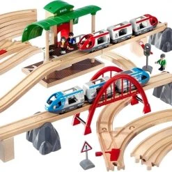 Άλλαξε τρένο στη στιγμή! Βοήθησε τους επιβάτες να αλλάξουν τρένο πανεύκολα με αυτό το συναρπαστικό σιδηροδρομικό σετ. Το τρένο της μπλε γραμμής λειτουργεί με μπαταρίες και μεταφέρει τους επιβάτες στον σύγχρονο σιδηροδρομικό σταθμό, όπου και βρίσκεται το τρένο της κόκκινης γραμμής. Με την περιστρεφόμενη λαβή, ο ανελκυστήρας πηγαίνει πάνω και κάτω, μεταφέροντας τους επιβάτες στις πλατφόρμες τους. Το σετ συμπεριλαμβάνει άφθονες ράγες και διακλαδώσεις διαδρομών, για ατελείωτη διασκέδαση. Χρησιμοποίησε τη φαντασία σου και δημιούργησε μοναδικές διαδρομές.