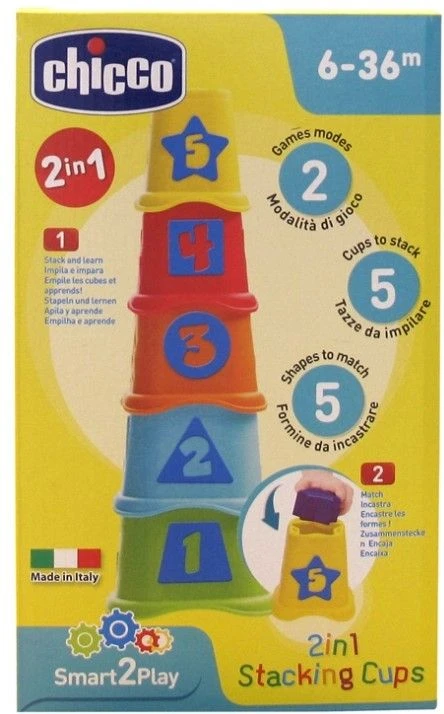 Το chicco πυραμίδα με κυβάκια 2 σε 1 με διαφορετικό μέγεθος που μπαίνουν από το μεγαλύτερο στο μικρότερο. Με το πιάσιμο και το στοίβαγμα των δακτυλίων, το παιδί αναπτύσσει το συντονισμό και την κίνηση των χεριών.