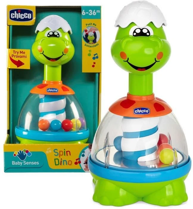 O χαριτωμένος δεινόσαυρος βοηθά το παιδί σας να αναπτύξει το συντονισμό των κινήσεών του και των ακουστικών του δεξιοτήτων. Ο δεινόσαυρος θα γίνει ο πολύχρωμος νέος του φίλος του μικρού σας. Ένα παιχνίδι με ωραία εμφάνιση που εκτός από τη δημιουργία διασκεδαστικών οπτικών εφέ καθώς περιστρέφεται, συνοδεύεται και με διαφορετικές μουσικές μελωδίες. Ένας πιστός φίλος που διδάσκει τη σχέση αιτίου-αποτελέσματος. Πιέστε το επάνω σημείο του παιχνιδιού για να περιστρέψτε τις έγχρωμες μπάλες μέσα και να ενεργοποιηθούν οι μελωδίες.