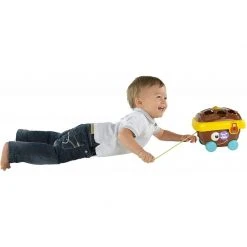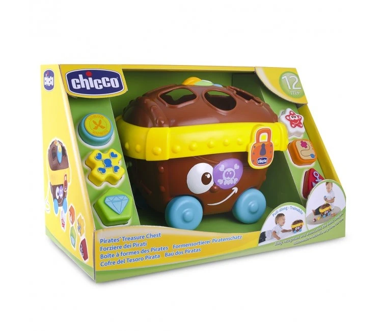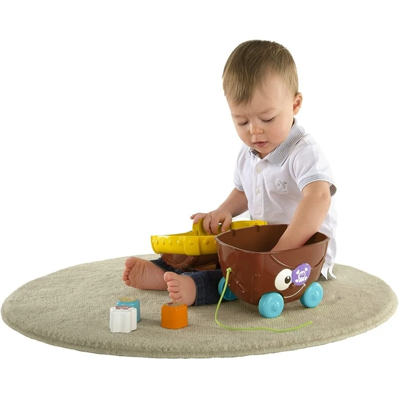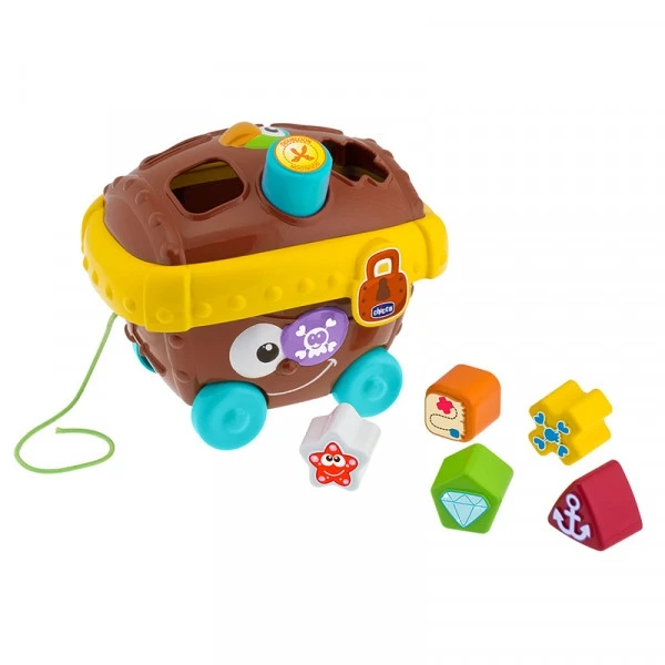 Αφού τοποθετήσει τα σχήματα, μπορεί να ανοίξει το θησαυροφυλάκιο με μια απλή χειρονομία, να ανακτήσει τον θησαυρό και να ξεκινήσει ξανά το παιχνίδι! Με τέσσερις τροχούς και ένα σχοινί με το οποία το παιδί σας μπορεί να ρυμουλκήσει το παιχνίδι, παίρνοντάς το πάντα μαζί του