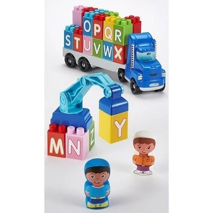 Ένα ωραίο φορτηγό με τούβλα 26 γραμμάτων, έναν αρθρωτό γερανό για φόρτωση και εκφόρτωση, καθώς και 2 χαρακτήρες. Γνωρίστε τα γράμματα, δημιουργήστε, μάθετε και διασκεδάστε ταυτόχρονα! Η ειδική μεταφορά γερανού παρέχει πολύχρωμα δομικά στοιχεία με μεγάλα γράμματα πάνω τους.