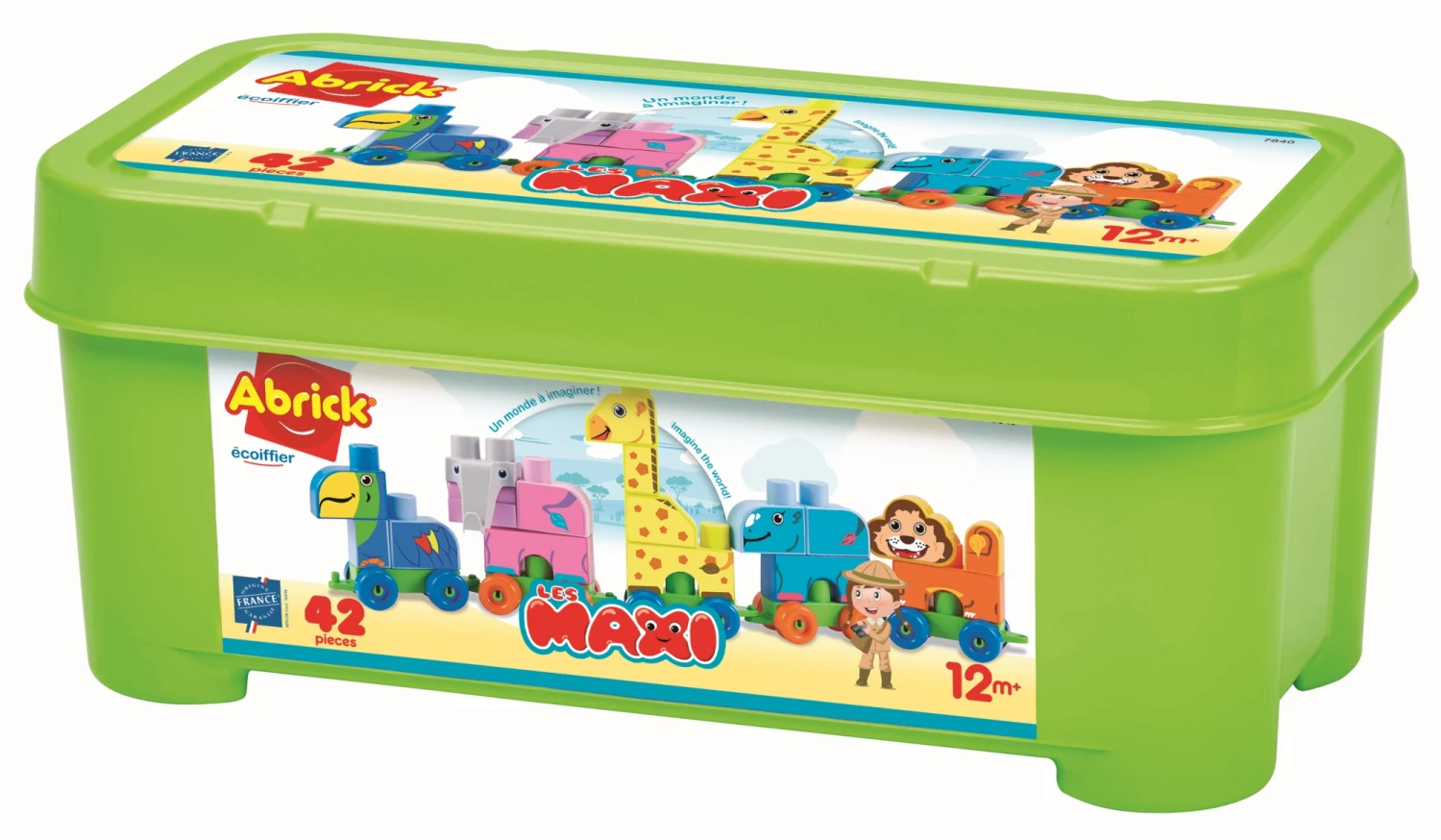 Ecoiffier Τουβλάκια Maxi Abrick Τρένο Ζωολογικού Κήπου 42 Τεμαχίων Τουβλάκια 42 τεμαχίων σε πράσινο πλαστικό κουτί με σχέδιο τρενάκι ζωολογικού κήπου.