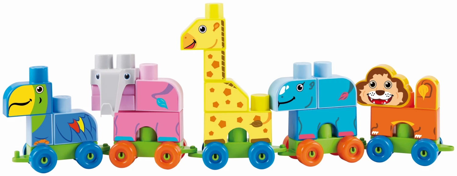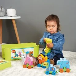 Τουβλάκια 42 τεμαχίων σε πράσινο πλαστικό κουτί με σχέδιο τρενάκι ζωολογικού κήπου.