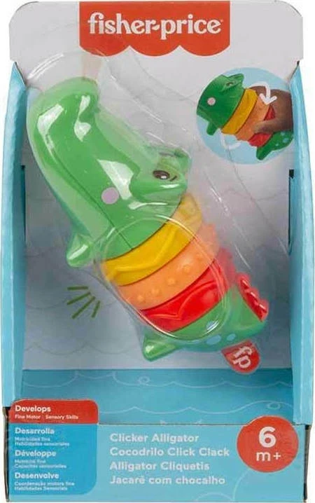 Ο αλιγάτορας Clicker Fisher-Price Clicker Activity είναι γεμάτη διασκεδαστικές δραστηριότητες για να εξερευνήσει το μωρό σας στο σπίτι ή όπου κι αν πάτε. Τα μικρά χέρια μπορούν να πιάσουν και να γυρίσουν τους πολύχρωμους δακτυλίους clacker. Η σύλληψη και η αλληλεπίδραση με τις δραστηριότητες βοηθά στην ενίσχυση των κινητικών δεξιοτήτων του μωρού, ενώ η ποικιλία των υφών εμπλέκουν και ευχαριστούν τις αισθήσεις τους. Παιχνίδι δραστηριότητας αλιγάτορας για παιχνίδι στο σπίτι ή για τη βόλτα.