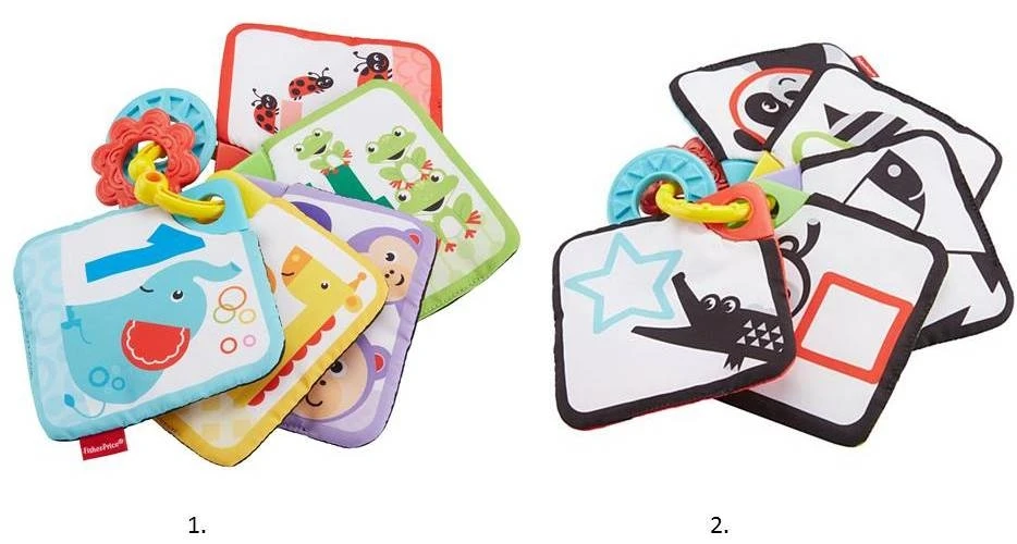 Το μωρό σας θα μάθει τόσα πολλά με τις Εκπαιδευτικές Κάρτες της Fisher-Price! Με 10 πλευρές για να εξερευνήσει, πολύχρωμες εικόνες με έντονες χρωματικές αντιθέσεις, διαφορετικές υφές και δύο κρίκους, αυτές οι μαλακές εκπαιδευτικές κάρτες θα ενισχύσουν τις αισθήσεις του μωρού! Και καθώς το μωρό σας μεγαλώνει, μπορείτε να χρησιμοποιήσετε τις κάρτες για να του παρουσιάσετε αριθμούς, σχήματα και αξιολάτρευτα ζωάκια! Εκεί όπου η ανάπτυξη συναντά το παιχνίδι. Λεπτή Κινητικότητα: Οι διαφορετικές υφές των καρτών ενθαρρύνουν το μωρό να τις αγγίξει και να τις εξερευνήσει, αναπτύσσοντας έτσι την επιδεξιότητά του. Αισθήσεις: Οι διασκεδαστικές υφές και οι ήχοι αναπτύσσουν την αίσθηση της αφής και της ακοής, ενώ τα φωτεινά χρώματα και οι εικόνες με τις έντονες αντιθέσεις αναπτύσσουν την αίσθηση της όρασης. Μάθηση: Καθώς το μικρό σας γυρίζει τις μαλακές κάρτες, γλυκά ζωάκια τού παρουσιάζουν τους αριθμούς από το 1 ως το 5!