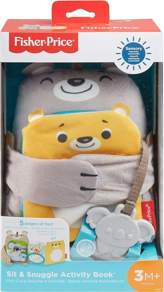 Fisher Price μαλακό Βιβλιαράκι δραστηριοτήτων Sit and Snuggle βιβλίο δραστηριοτήτων με 5 διασκεδαστικές σελίδες! Με καθρέφτη, 7 διαφορετικές υφές, ήχους και κοάλα οδοντοφυΐας