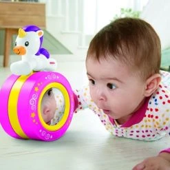 Ο μουσικός αυτός μόνοκερος της Fisher-Price® είναι ένα μαγικό φιλαράκι που ενθαρρύνει το μωρό σας να μπουσουλήσει με μουσική και διασκεδαστικούς ήχους! Με δραστηριότητες ιδανικές για παιχνίδι μπρούμυτα και διασκεδαστική μουσική που παίζει καθώς το μωρό μπουσουλάει πίσω από αυτό το αξιολάτρευτο φιλαράκι. Εκεί όπου η ανάπτυξη συναντά το παιχνίδι.Κινητικές Ικανότητες: Πιέζοντας το φιλαράκι του και βλέποντάς το να κινείται, το μωρό ενθαρρύνεται να το ακολουθήσει μπουσουλώντας! Αυτοανακάλυψη: Ποιος είναι αυτός; Το μωρό κοιτάζει τον προσωπάκι του στον καθρέφτη, ανακαλύπτοντας έτσι τον ευατό του.Αισθήσεις:Τα έντονα χρώματα και η μουσική ενισχύουν την όραση και την ακοή του. Η κίνηση του μονόκερου παροτρύνει το μωρό να το ακολουθήσει μπουσουλώντας!
