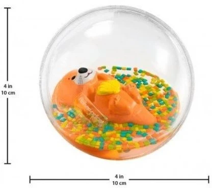 Πλαστική μπαλίτσα με βίδρα. Ακολουθεί την ανάπτυξη του μωρού με 2 τρόπους: Την κυλάει και την ακολουθεί μπουσουλώντας. Την κουνάει! Χρωματιστά κομφετί στριφογυρίζουν στο νερό.