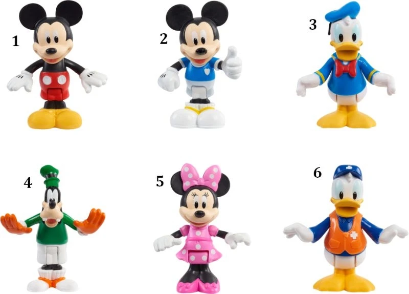 Φιγούρες ύψους 7,5 εκ. του Μίκυ και της παρέας του! Συμβατές για παιχνίδι με όλα τα σετ παιχνιδιου Mickey (πωλούνται ξεχωριστά). Κάθε φιγούρα έχει αρθρώσεις σε 4 σημεία. Η συλλογή περιλαμβάνει τις φιγούρες: Mίκυ (κλασσική εμφάνιση), Μίκυ Ποδοσφαιριστής, Ντόναλντ Διασώστης, Γκούφι, Μίννι. Κάθε μια πωλείται ξεχωριστά.