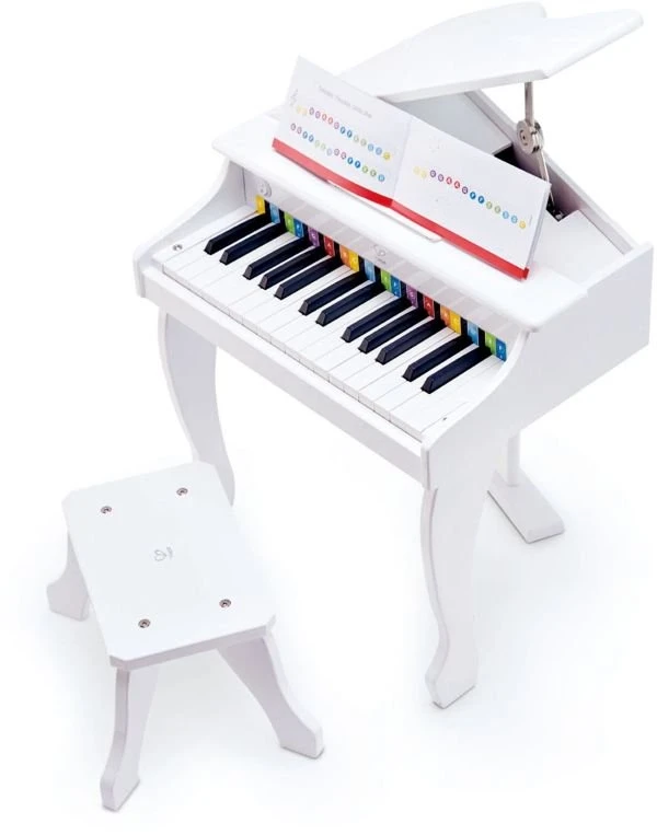 Hape Deluxe Λευκό Πιάνο Σαν Αληθινό Με 30 Πλήκτρα Και Καρεκλάκι