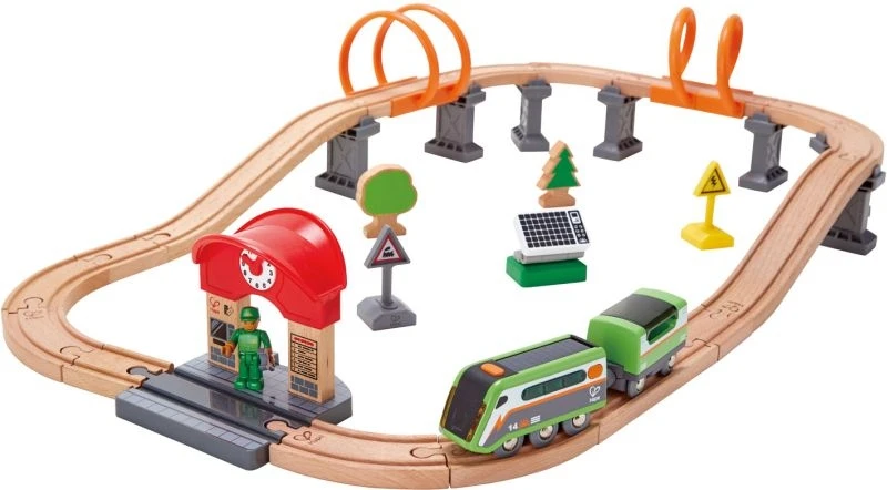 Κάντε ένα βήμα προς το μέλλον, με αυτό το τρενάκι που λειτουργεί με ηλιακή ενέργεια. Ο κινητήρας διαθέτει δικό του ηλιακό πάνελ, που παράγει αρκετό ηλεκτρικό ρεύμα για να τροφοδοτήσει τα φώτα του. Σπρώξτε το μέσα από τις σπείρες στο σταθμό, όπου περιμένει ο τεχνικός.
