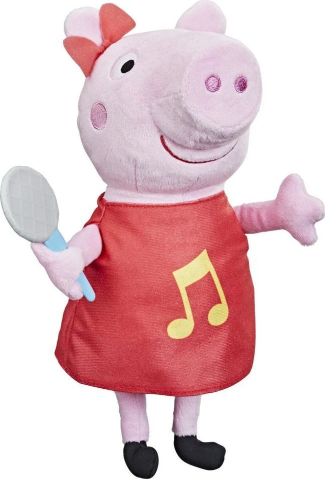 Η Πέππα το Γουρουνάκι λατρεύει το τραγούδι και με τη λούτρινη κούκλα Oink-Along Songs Peppa, τα παιδιά μπορούν να τραγουδήσουν μαζί της! Εμπνευσμένη από τη δημοφιλή βρετανική σειρά κινουμένων σχεδίων της Entertainment One, αυτή η κούκλα Πέππα το Γουρουνάκι 28cm ιδανική για αγκαλιές, καθώς ακόμη περιλαμβάνει αξεσουάρ-μικρόφωνο για να “τραγουδά”. Θέλετε να ακούσετε τα τραγούδια της; Εύκολο! Πιέστε την κοιλίτσα της ακούστε την να γελά (ρουθουνίζοντας!), ή να κάνει «όινκ-όινκ»! Επίσης, ακούστε 3 δημοφιλείς μελωδίες που τα παιδιά προσχολικής ηλικίας μπορεί να θυμούνται από την τηλεοπτική σειρά. Τα παιδιά μπορούν να αναβιώσουν σκηνές από τη σειρά ή να φανταστούν τις δικές τους μουσικές περιπέτειες με αυτή τη λούτρινη, αξιαγάπητη κούκλα!