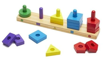 Τα 15 ξύλινα κομμάτια σε αυτό το νέο σχήμα sorter προσφέρουν μια ποικιλία χρωμάτων, σχημάτων και ευκαιριών για μάθηση. Στοιβάξτε τα στην πεταμένη βάση με τη σειρά, ανακατέψτε τα σχήματα και τα χρώματα ή δημιουργήστε τα δικά σας παιχνίδια με αυτά τα συναρπαστικά πρώτα χειραγώγηση! Ένα τυπωμένο κλειδί στην ξύλινη βάση προσφέρει καθοδήγηση όταν είναι επιθυμητό, αλλά οι δυνατότητες παιχνιδιού είναι ατελείωτες. Χρησιμοποιήστε τα πολύχρωμα μπλοκ για να ενθαρρύνετε τη διαλογή, την αντιστοίχιση, την καταμέτρηση, τη στοίβαξη, την επιδεξιότητα, τις λεπτές κινητικές δεξιότητες, την αναγνώριση χρωμάτων και πολλά άλλα!