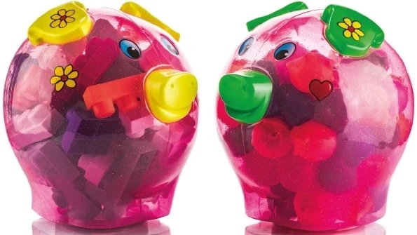 Τουβλάκια σε αποθηκευτικό κουτί με σχήμα γουρουνάκι.