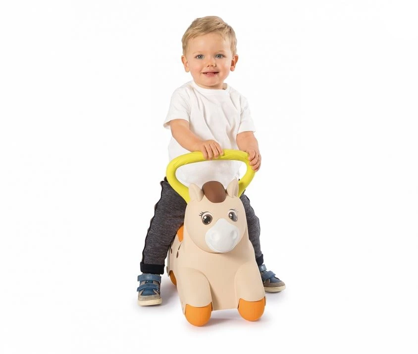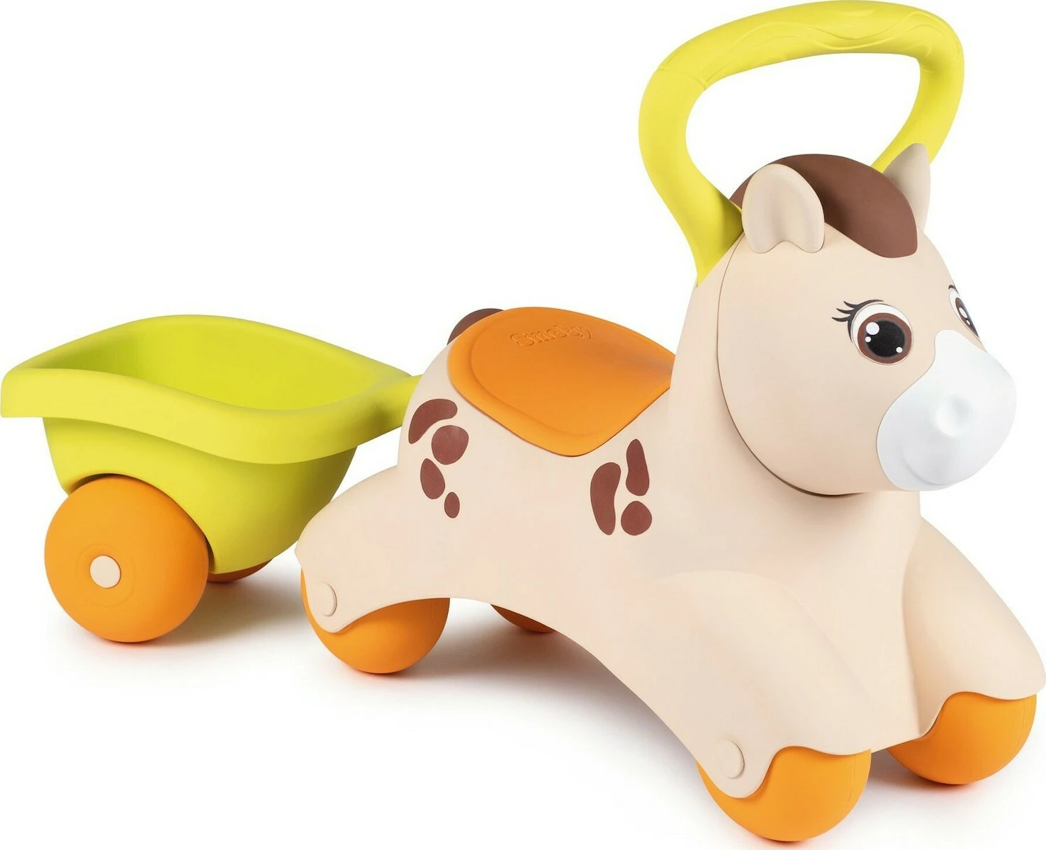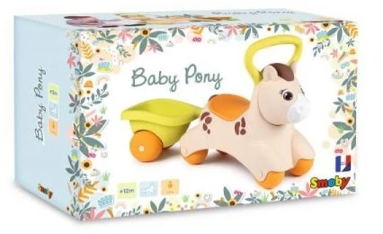 Με το Baby Pony, το μικρό σας θα είναι σε θέση να εξερευνήσει εύκολα όλες τις γωνιές του σπιτιού! Μπορεί επίσης να μεταφέρει όλα τα ευρήματά του ή τα παιχνίδια του στο τρέιλερ που περιλαμβάνεται. Εύκολο στη χρήση χάρη στην εργονομική λαβή του, αυτό το ride-on θα επιτρέψει στο παιδί σας να αναπτύξει τις κινητικές του δεξιότητες ενώ διασκεδάζει. Για παιδιά ηλικίας 12 μηνών και άνω – Κατασκευασμένο στη Γαλλία.