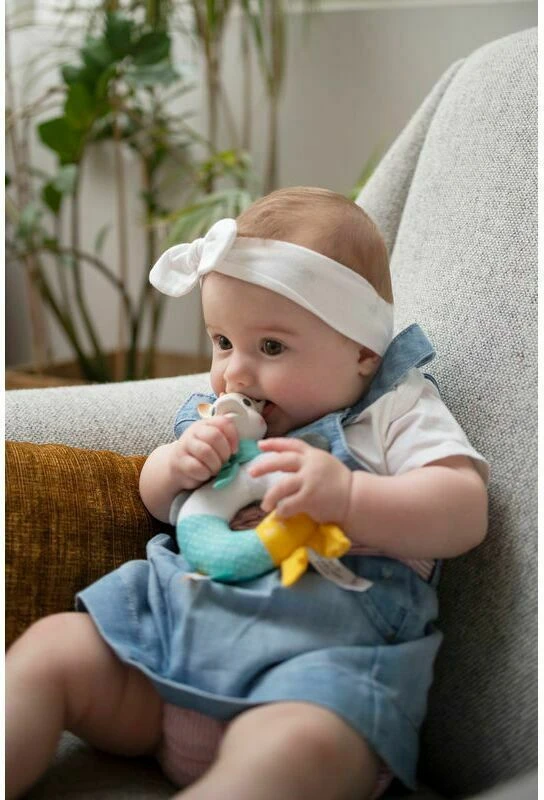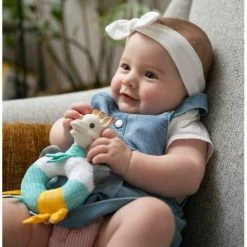 Ο τέλειος συνδυασμός μεταξύ του καουτσούκ και του υφάσματος βρίσκεται σε αυτή την χαρούμενη κουδουνίστρα της Σόφις της καμηλοπάρδαλης που θα ηρεμήσει και διασκεδάσει ταυτόχρονα το μωράκι σας!