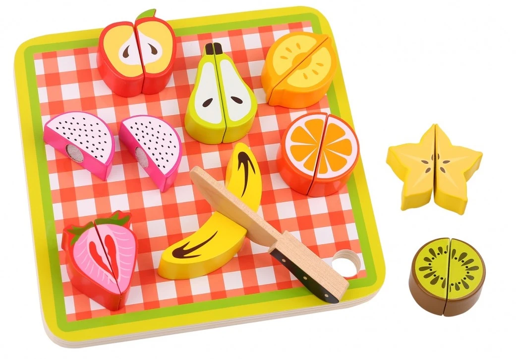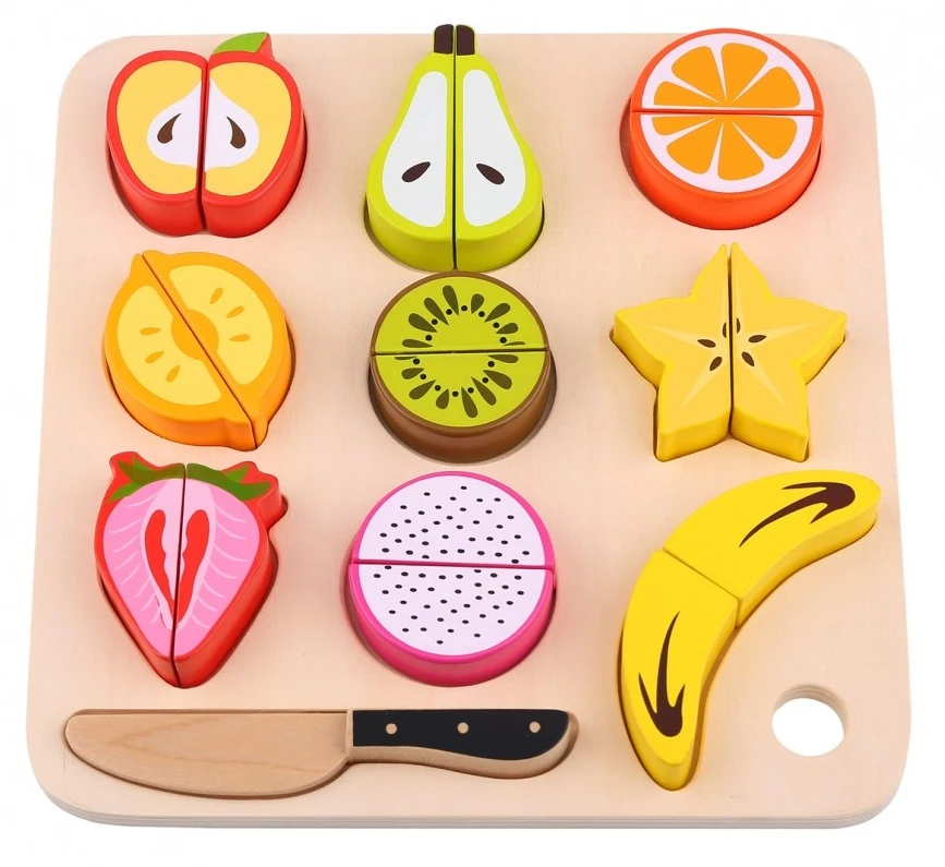 Tooky Toy Ξύλινο Παζλ Σφηνώματα Φρούτα σε Δίσκο Κοπής.