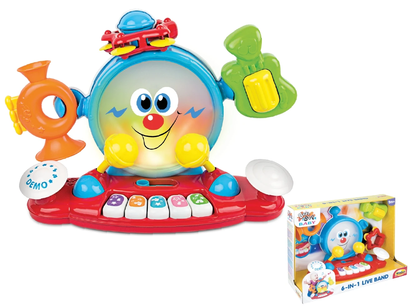 Περιλαμβάνει μεγάλο τύμπανο ντραμς, 5 κλειδιά πιάνο και κύμβαλο (πιατίνι). Ακόμη, αποσπώμενο ταμπουρίνο, τρομπέτα και κιθάρα. 2 επίπεδα: ελεύθερο παιχνίδι και παιχνίδι με τις νότες. Αστεία ηχητικά εφέ και χαρούμενες μελωδίες. Δημιούργησε τη δική σου μουσική αναπτύσσοντας δεξιότητες αλλά και αγάπη για τη μουσική.