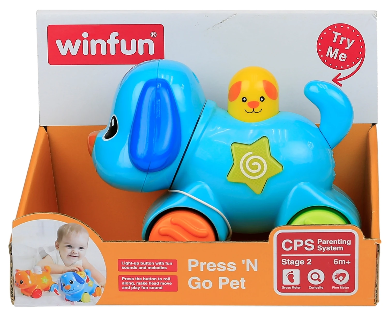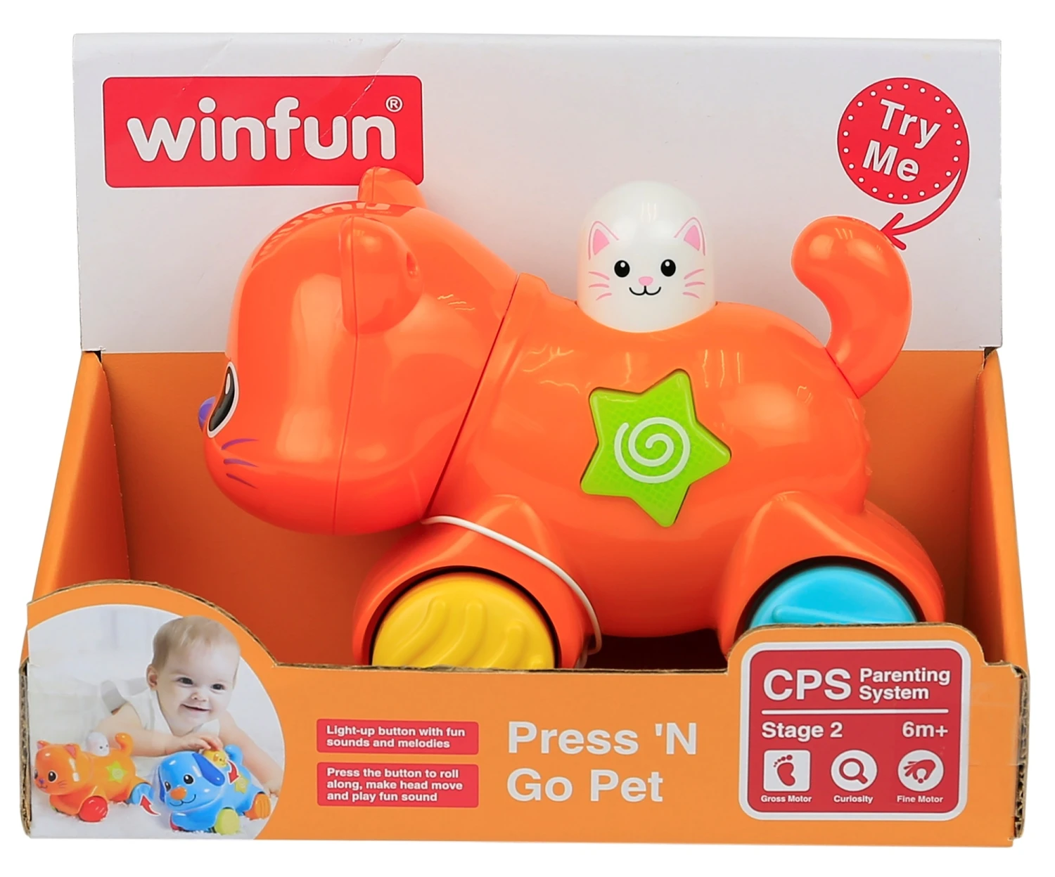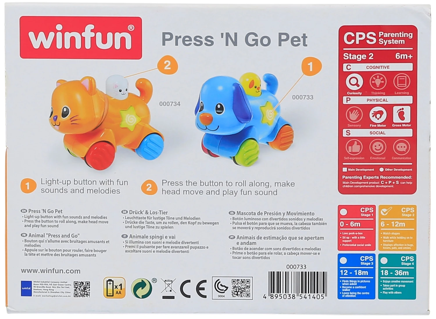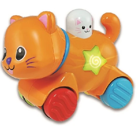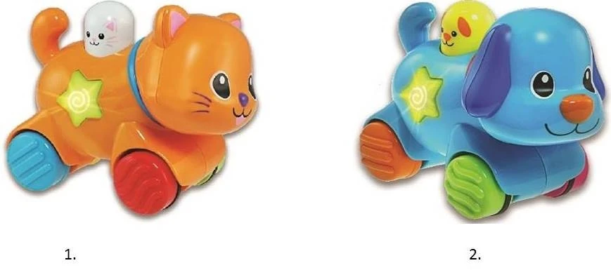 Πολύχρωμα ζωάκια. Με κουμπί που πατώντας το αρχίζουν να τρέχουν και ακούγεται η φωνή του κάθε ζώου. Με φωτάκια που αναβοσβήνουν και ευχάριστες μελώδίες και ήχους.