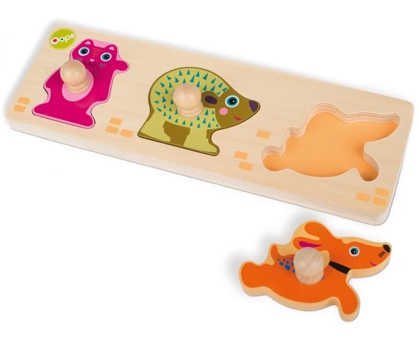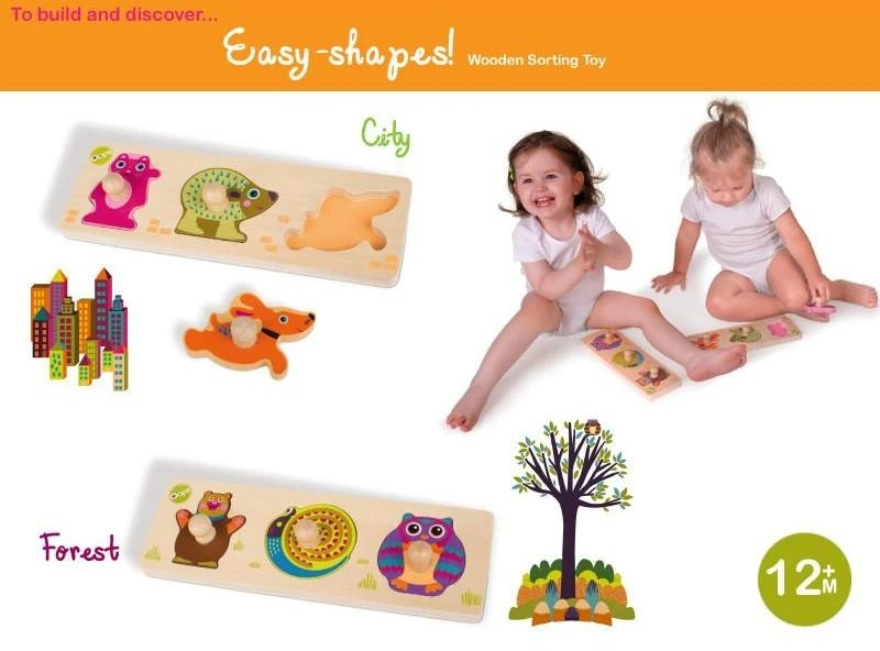 Το ξύλινο παζλ Easy Shapes είναι ένα χαριτωμένο παιχνίδι όπου το μωρό θα πρέπει να καταφέρει να ταιριάξει τα ζωάκια στα περιγράμματά τους!